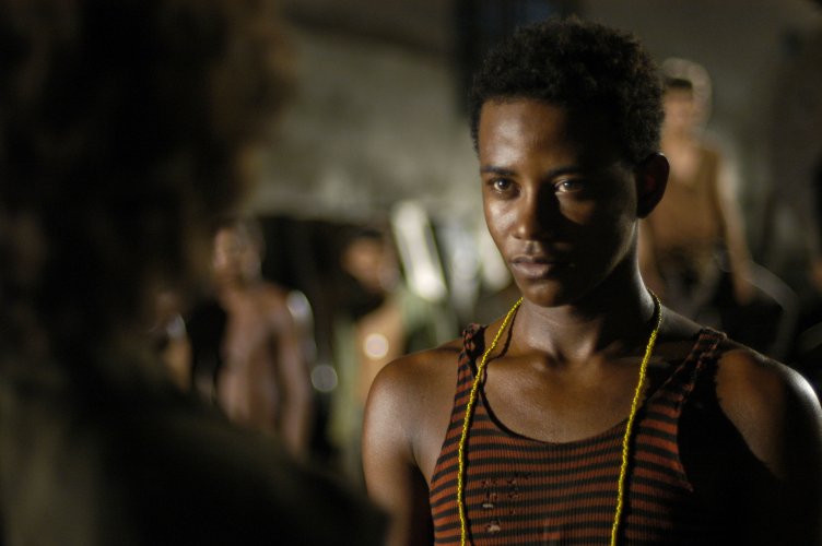 O rapaz amarra o lenço colorido na cabeça, aperta os nós sob o queixo, e involuntariamente olha para frente como...